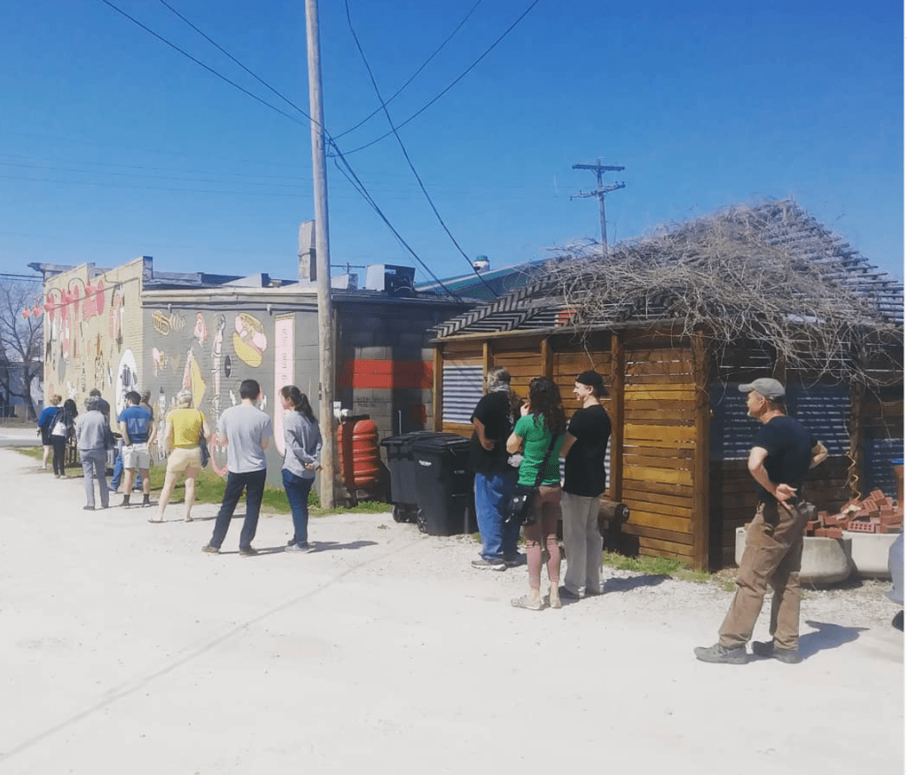 At the peak the line of customers stretched about half a block, owing in part to customers spacing themselves several feet apart. Still, we soon had to start letting customers know their wait might be in vain.