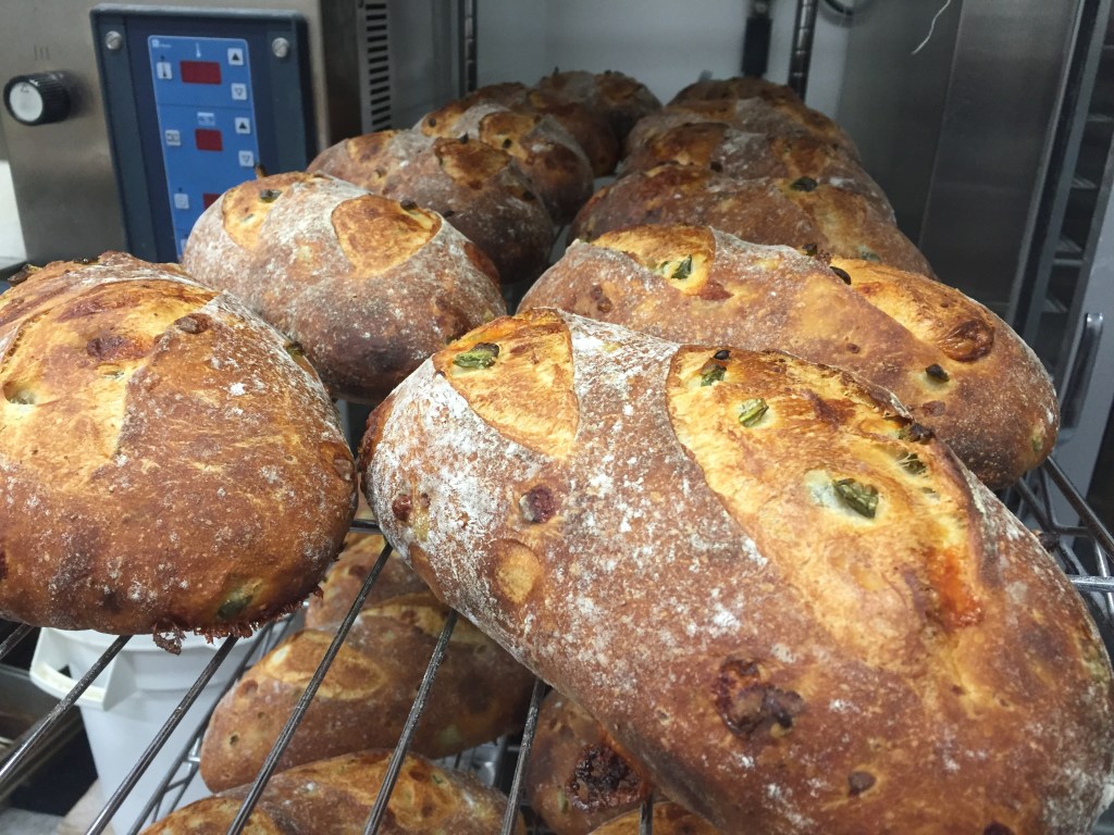 A fresh batch of Smittybread Jalapeno-Cheddar Sourdough cools off after a recent bake. Smittybread will be closed Aug. 8-Aug. 18 for summer break.