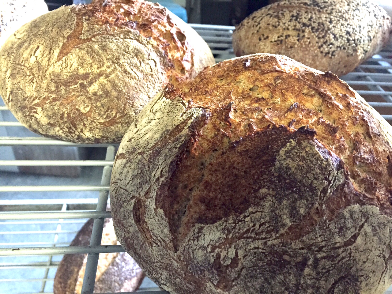 My booth location was a bit of a challenge. Because I’m a relative newcomer, I don’t get to pick and choose where my booth will be located, and this past week I drew a spot practically by myself. Even so, loyal customers sought me out, and those unfamiliar with Smittybread could hardly miss the booth. I sold out, down to the half loaf of Lafayette sourdough I’d cut into for free samples (half price of course!) It’s a nice feeling loading empty bread boxes into the car when it’s time to go home.